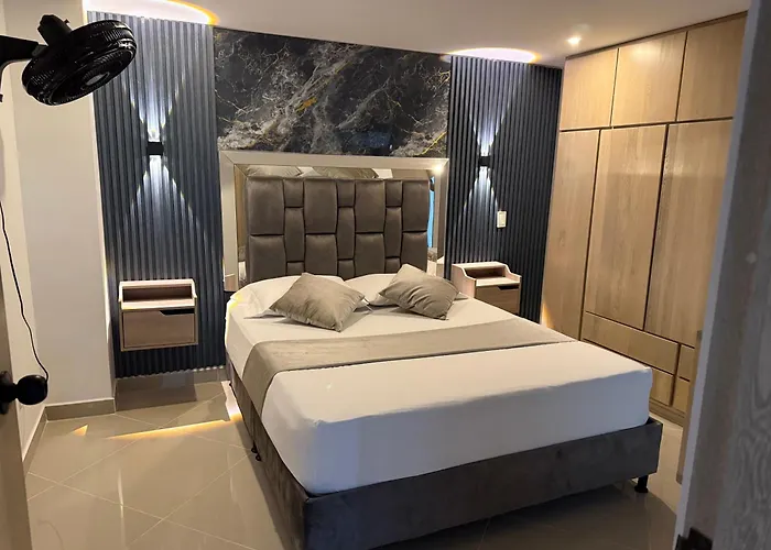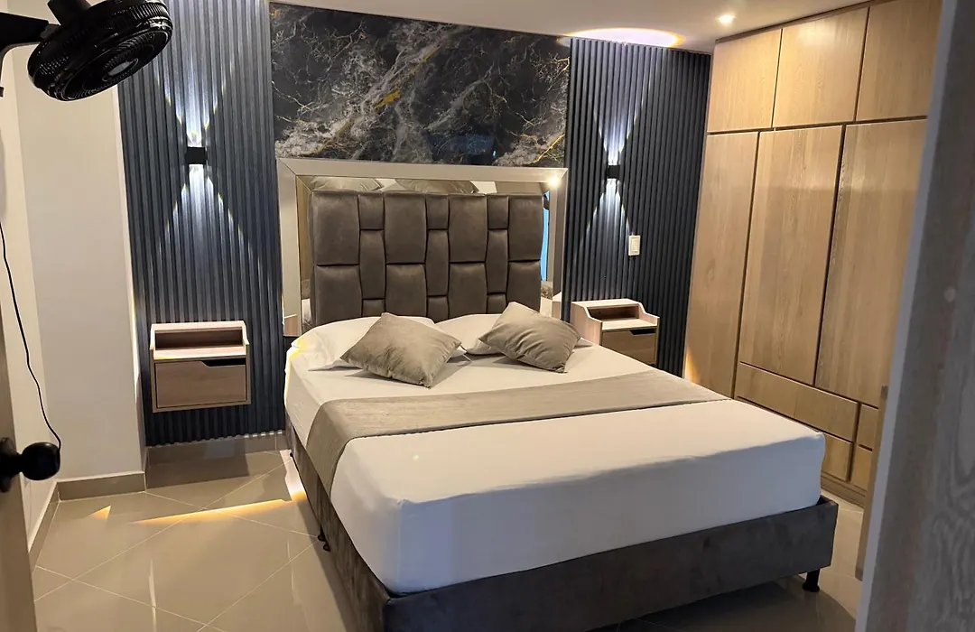 Among the self-catering amenities provided is an equipped kitchen with a refrigerator and glassware. Olaya Herrera airport is at a 5-minute driving distance, and Cra 55 con Cll 6 Sur bus stop is within a few blocks of Nuevo Cerca Poblado 301 Apartment.